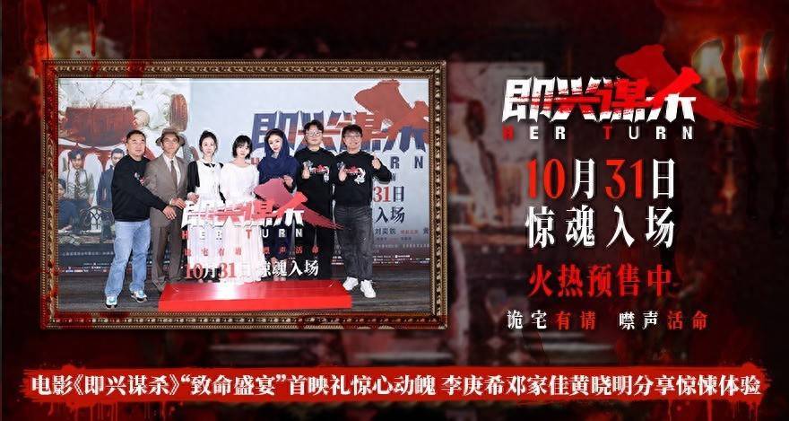 10月29日,电影《即兴谋杀》在北京举办“致命盛宴”首映礼,导演程亚楠,编剧/制片人平辉,领衔主演李庚希、邓家佳,特别主演黄晓明,主演岳佳颐、赵胤胤来到现场与观众交流,解锁各自在这场豪门惊悚猎杀局的惊魂体验。片中场景重现将影院秒变诡宅,惊悚氛围十足。电影《即兴谋杀》由程亚楠执导,李庚希、邓家佳、刘奕铁领衔主演,黄晓明特别主演,岳佳颐、赵胤胤主演,杨皓宇特别出演博星优配,宗俊涛友情出演,吕鑫、龚毅星参加演出。影片将于10月31日全国上映,正在火热预售中!